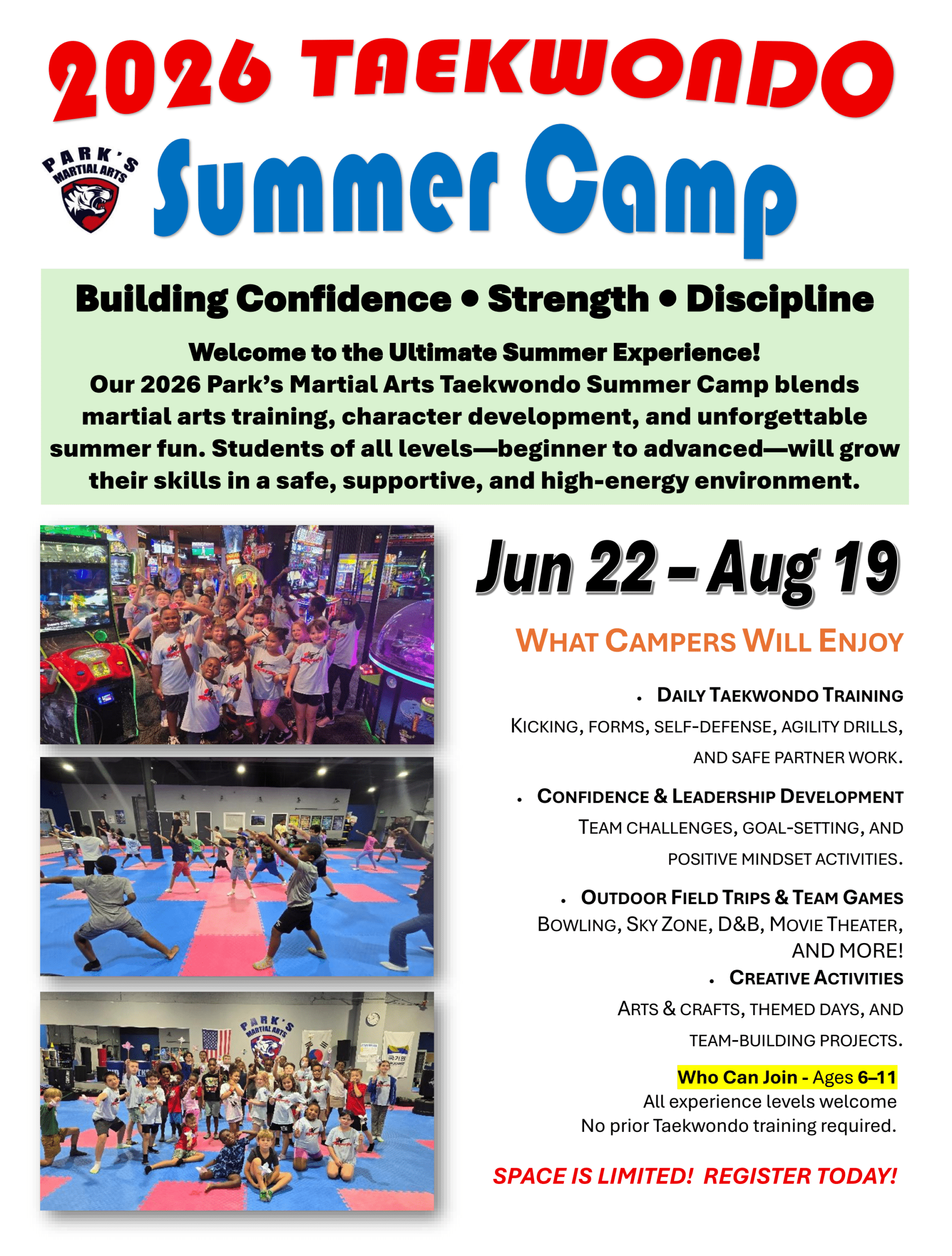 2025 Fall Schedule is effective on Aug. 25 2025 Fall Class Schedule – Park's Martial Arts USA